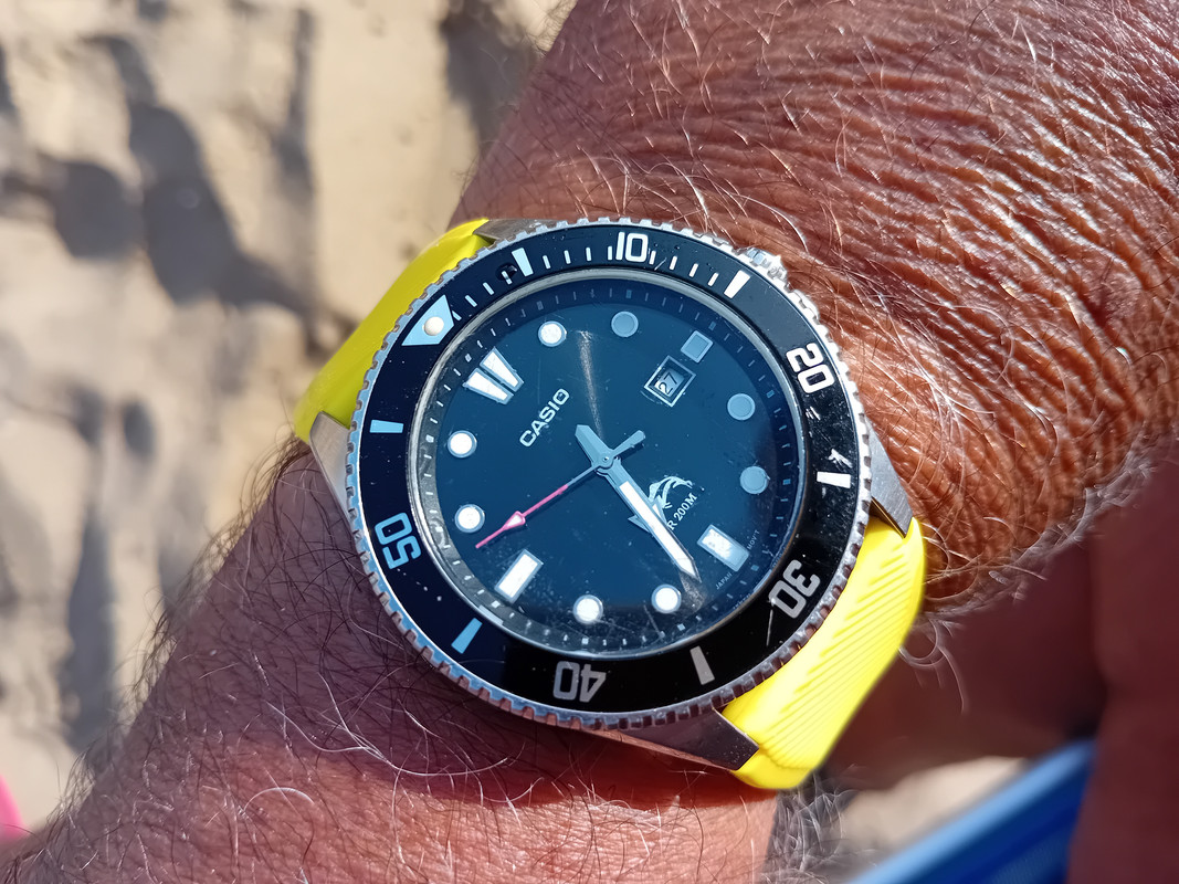 μέσα στο νερό, φοράω συνέχεια το πρώτο. Και το λουράκι σιλικόνης, δεν κολλάει άμμο, ούτε μένει βρεγμενο σαν το ΝΑΤΟ.