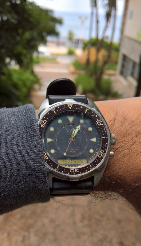 Καλημέρα σε όλους τους Κυρίους. Σήμερα ο παπούς (αρχές '90 αγορά) ήρθε από αλλαγή μπαταρίας και στεγανοποίηση, έτοιμο να συνεχίσει το κολύμπι. Το λουράκι είναι από άλλο citizen και αναφέρει ταχύτητες ανέμου στο πινακάκι του, αντί γιά χρόνους και μέτρα κατάδυσεις των divers.