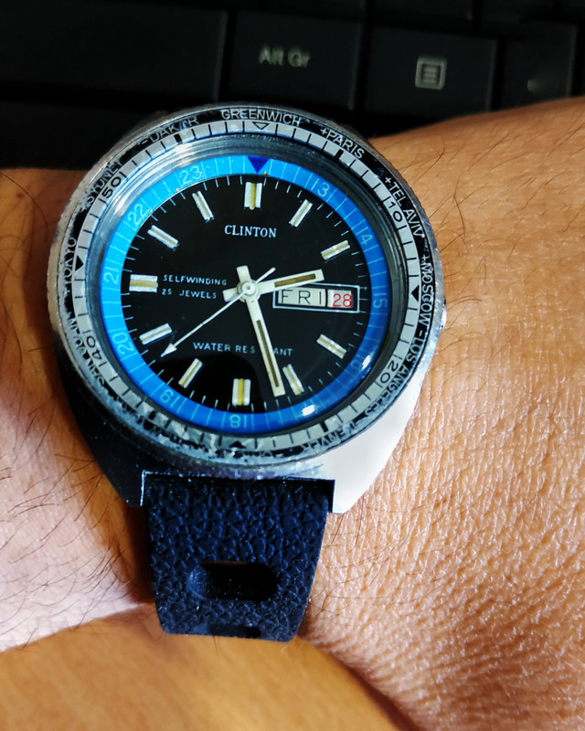 Όχι καμία. Η αισθητική αυτή του chapter ring με 24ωρο ή 60min dial ήταν δημοφιλής από τα 60s σε πολλούς κατασκευαστές. Στο συγκεκριμένο CLINTON είναι και υπερυψωμένη.