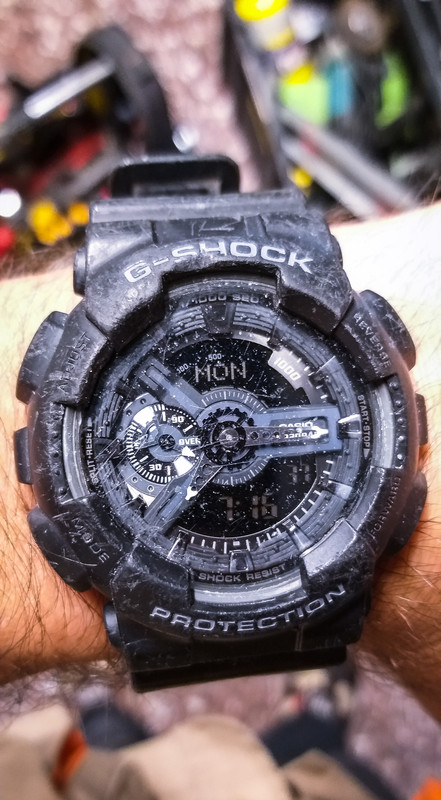 Οι δείκτες είναι ασημί γυαλιστερό όποτε ξεχωρίζουν εύκολα, τα σημάδια των ωρών όμως είναι πιο σκούρο γκρι γυαλιστερό επίσης, την αναλογική ώρα πάντως την ξεχωρίζω πολύ άνετα σε όλες σχεδόν τις συνθήκες. Αυτό που δεν διαβάζεται εύκολα είναι οι ηλεκτρονικές οθόνες που είναι  μικρές και negative display. Σε συνδυασμό με την φθορά στο κρύσταλλο είναι πλέον πιο δύσκολο να τις ξεχωρίσεις.