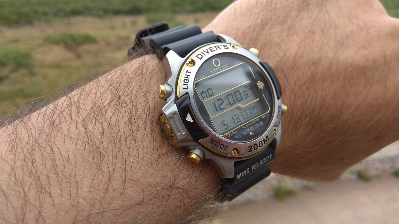 Καλημέρα σε όλους τους Κυρίους. Σήμερα ο παπούς (αρχές '90 αγορά) ήρθε από αλλαγή μπαταρίας και στεγανοποίηση, έτοιμο να συνεχίσει το κολύμπι. Το λουράκι είναι από άλλο citizen και αναφέρει ταχύτητες ανέμου στο πινακάκι του, αντί γιά χρόνους και μέτρα κατάδυσεις των divers.
