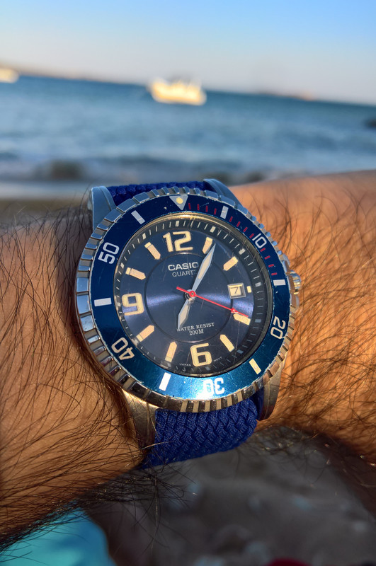 Αρχικά με δερμάτινο μαύρο λουράκι, αλλά, έβαλα αυτό σαν καλύτερο χρωματικά προς το χρυσό. Απλώς, είναι λιιιιιιιιιιιγο μικρό. Επίχρυσο, με καλό τόνο χρυσού και πάχος επιμετάλλωσης, δεν έχει ίχνη φθοράς.
