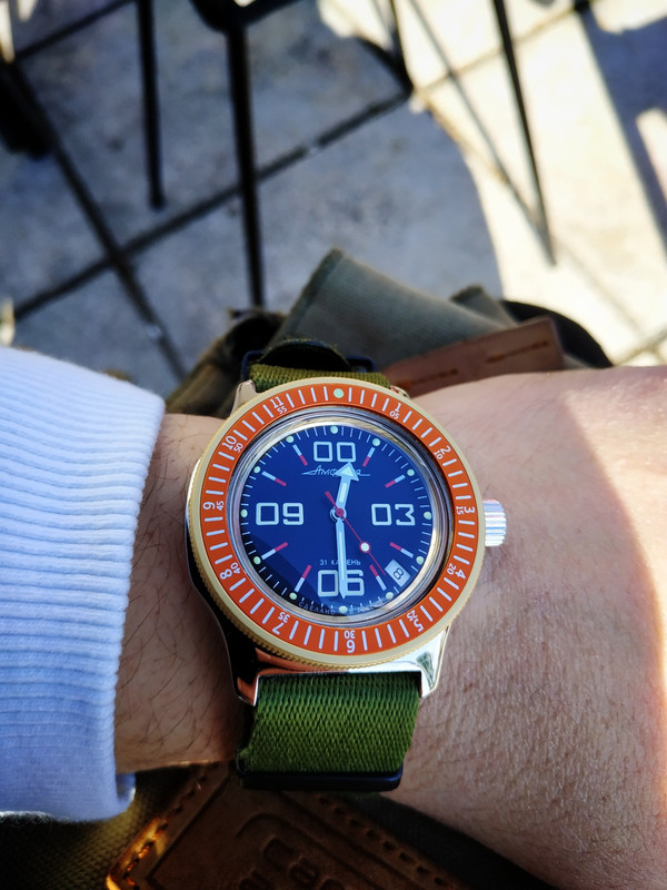 Κι αυτό αναστήθηκε από τα νεκρά αρχαία ρολόγια μου και το φόρεσα σήμερα μετά από περισσότερα από 10 χρόνια. Εκτός από μπαταρία ήθελε φτιάξιμο στα πιρακια που χτυπάνε τα pushers του χρονογράφου.