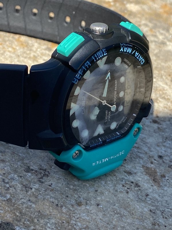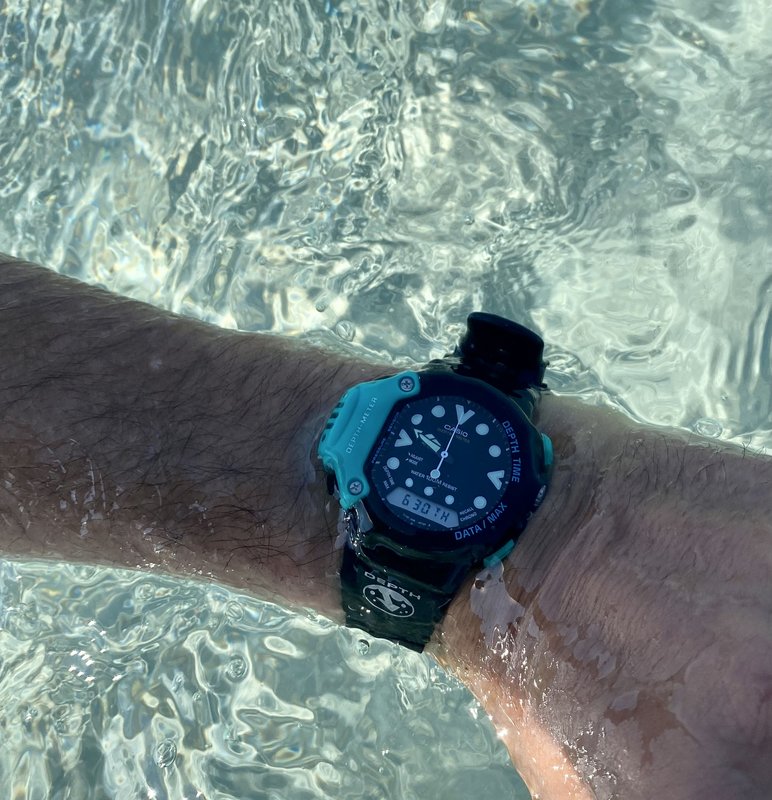 Με πρόσφατο σέρβις αλλαγής όλων των ελαστικών και τεστ στεγανότητας 🤔😁🤣δήθεν από σοβαρό μαγαζί αποφασίστηκε ότι το καλοκαίρι του 22 θα ήταν αυτό που περίμενε τόσα χρόνια……Βουτιές στα 50 cm ,κύματα ,αλάτι και όλα τα σχετικά …..όμως το γέρικο Casio  ήταν απροπόνητο και δεν έβγαλε τον αγώνα 😇🙃