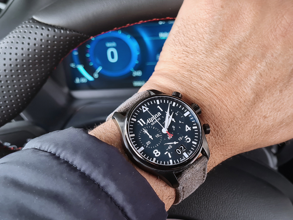Σε συνδυασμό με το ρολόι έπρεπε να το βάλω την σπορ οδήγηση,  που έχει  κόκκινες ενδείξεις  στον πίνακα οργάνων και δένει  με τον  δείκτη του Alpina. ;)  ;D