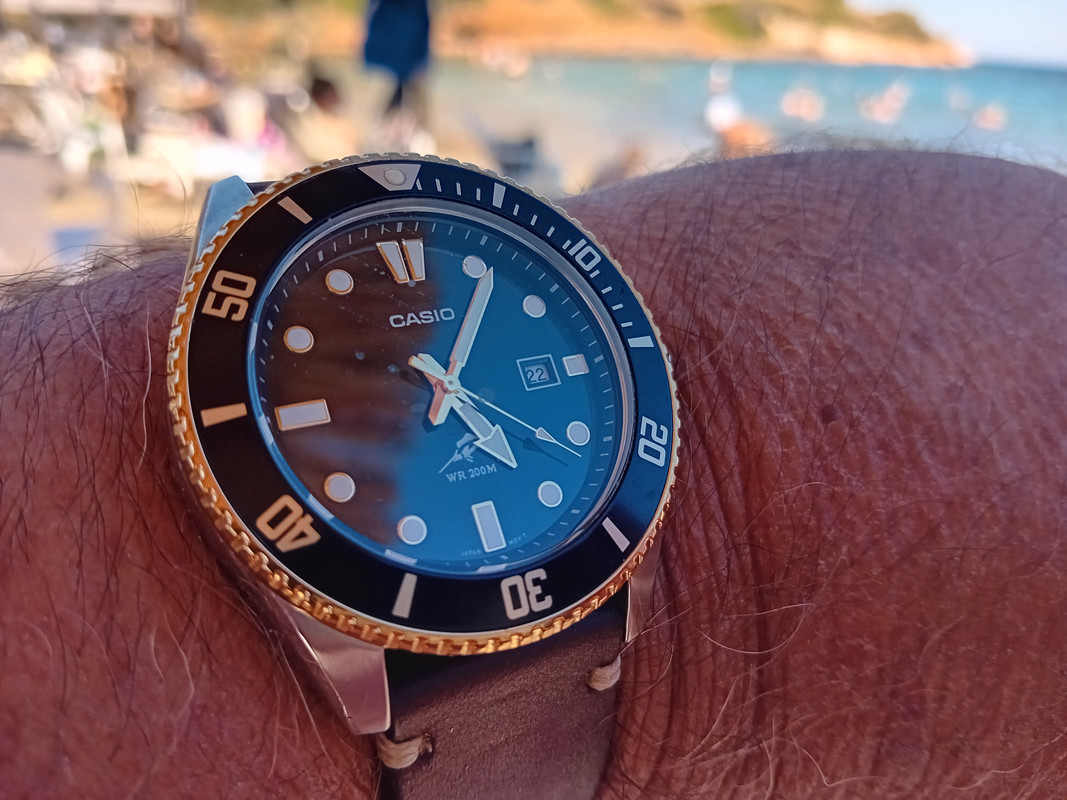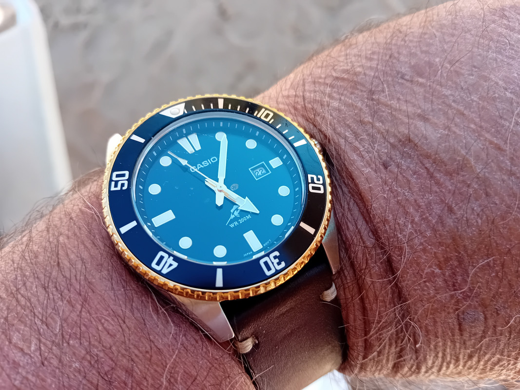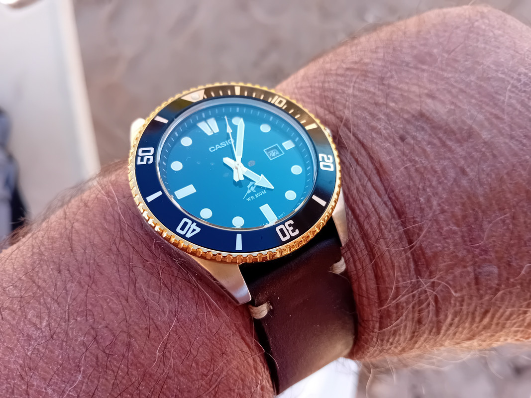 Το δέρμα --> δέρμα, το χρυσό --> χρυσό, αλλά σήμερα έκαναν το μπάνιο τους ! ( η ημερομηνία άσχετη, μια και έχει να ρυθμιστεί πάνω από χρόνο. ! ) Λέτε να σκουριάσει ο χρυσός των 25 ΚΤ ? Χρυσοί δείκτες, χρυσές ώρες, χρυσή στεφάνη ! Από τον Ισπανό. Το λουράκι από τον @yannisb