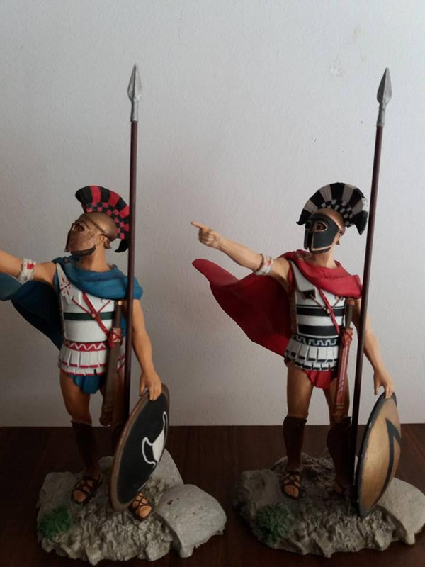 Είναι φιγούρες αρχαίων Ελλήνων οπλιτών.Με τον μπλε μανδύα είναι Αθηναίος οπλίτης κ με τον κόκκινο Σπαρτιάτης αξιωματικός.Τα χρώματα κ τα σχέδια δεν είναι τυχαία αλλα απο μελέτη που έκανα απο κάποια περιοδικά σχετικά με τους οπλίτες της κλασσικής εποχής. :)