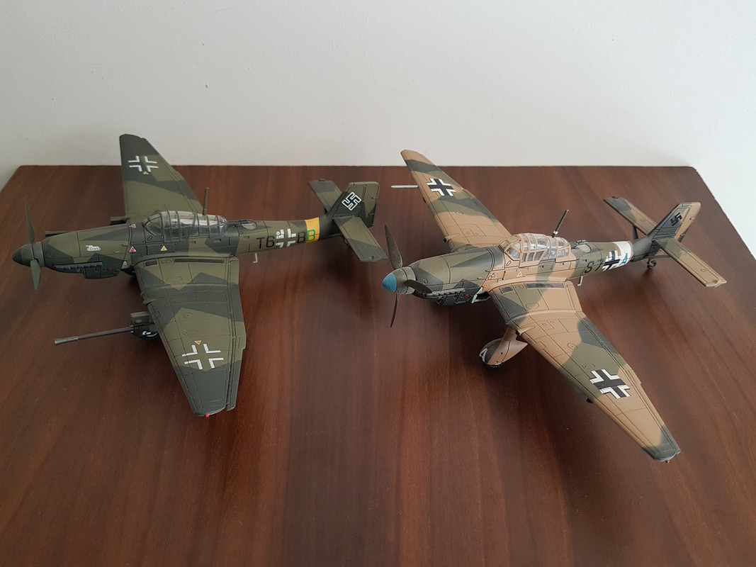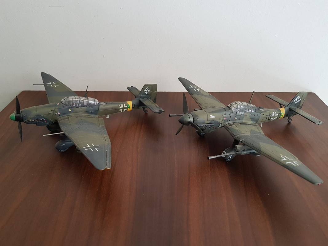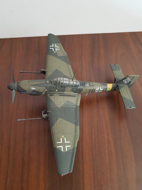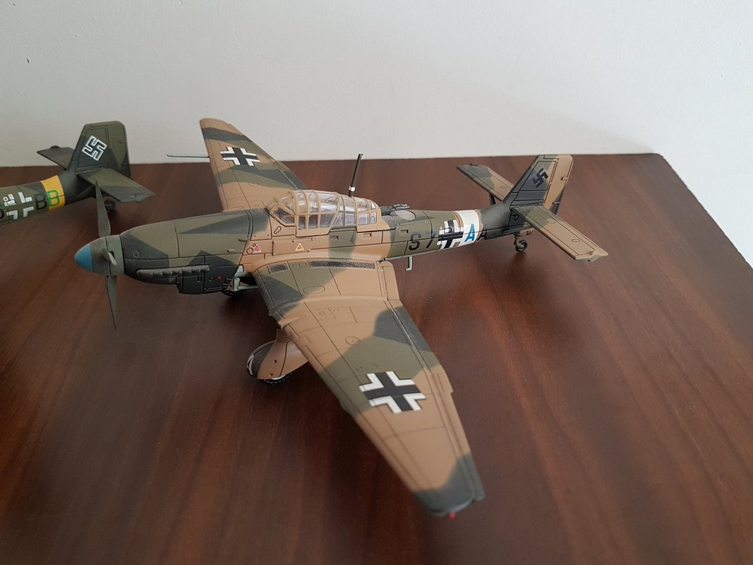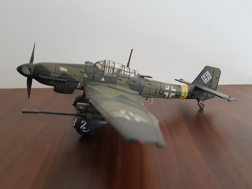 Το Stuka Junkers Ju 87 ήταν ένα γερμανικό βομβαρδιστικό αεροσκάφος κάθετης εφόρμησης. Το συγκεκριμμένο μοντελο Ju 87G με τα πυροβόλα των 37 mm ήταν καταστροφέας αρμάτων κ ήταν πολύ αποτελεσματικό στην μάχη. Παρατηρήστε στην μύτη που έχει ζωγραφισμένο ένα τανκ που δηλώνει την αποστολή του..