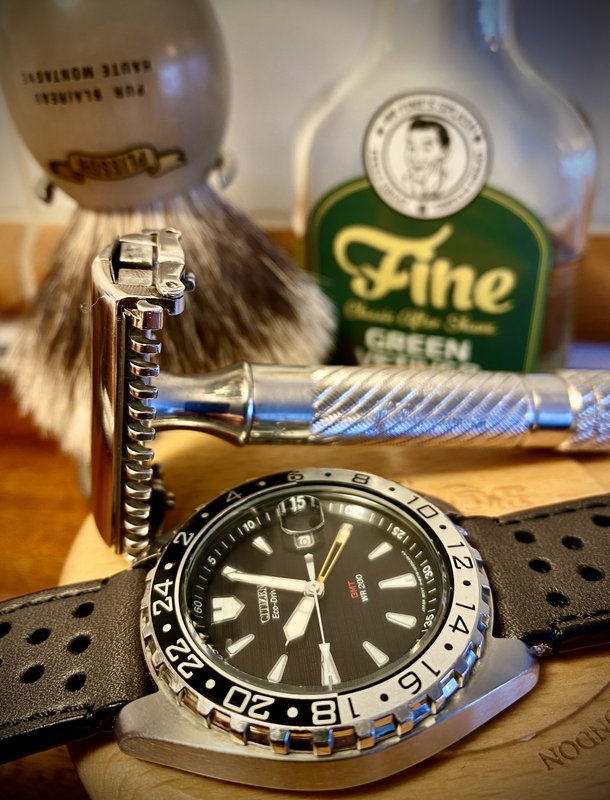 Η μεγάλη στεφάνη περιστρέφεται και βλέπεις κάθε φορά την ώρα περνώντας το σημείο της στεφάνης απ τον ακίνητο δείκτη. Η μικρή στεφανη αριστερά δείχνει τον μήνα και η δεξιά την ημερομηνία.