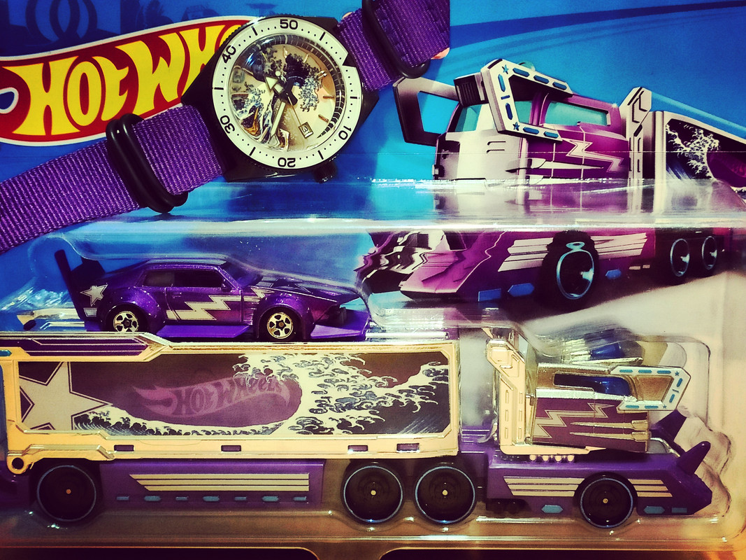 Μου πήρε πολύ καιρό μέχρι να πάρω χαμπάρι ότι αυτά τα 2 ταιριάζουν και στο χρώμα και στο ότι έχουν το great wave of kanagawa. Σχεδόν μπαίνω στον πειρασμό να βγάλω το Hot wheel από τη συσκευασία  ;D