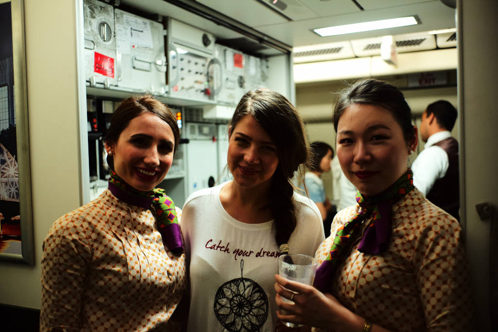 Η αριστερή με πλησίασε με το που μπήκα στο αεροπλάνο, με αφορμή τη Leica που κρατούσα. Ρουμάνα.