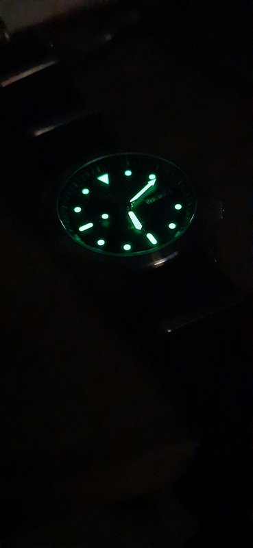 Η κάσα μεγάλη αλλά λόγω σχήματος κάθεται καλά στον καρπό, είναι γυαλισμένη στα πλάγια και το υπόλοιπο είναι brushed. Καλό lume μπλε χρώματος και ωραίο λουράκι αν και θέλει να φορεθεί λίγο.