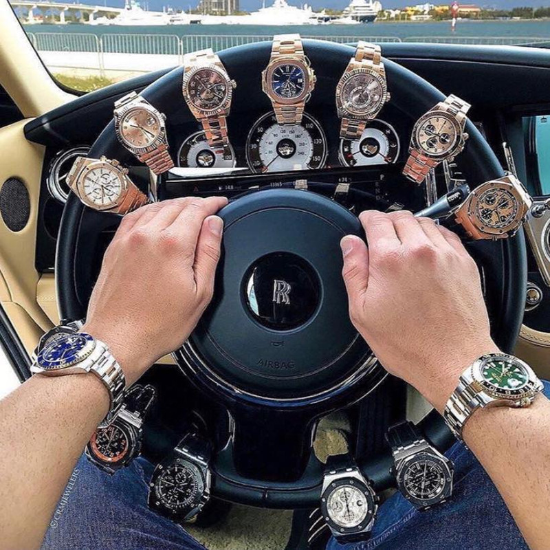 Δυο θέματα για σχολιασμό στη συγκεκριμένη φωτό.Κατ’ αρχας πού τη βρήκε την όρεξη,στη πάνω σειρά τα ρολόγια με το μπρασελέ,να βγάζει τα μπρασελέ για να τα περάσει στο τιμόνι.