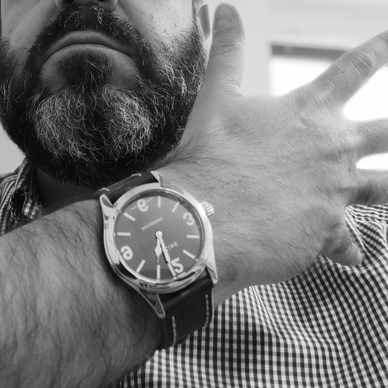Κάτι σε distressed leather για να ταιριάζει με τον vintage χαρακτήρα του ρολογιού.