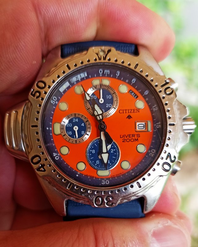 AY5000 (σε ένα διαφορετικό dial πορτοκαλί με εξωτερικό δαχτυλίδι μπλε, είναι αυτό που φοράω και τρώει τη χρήση)