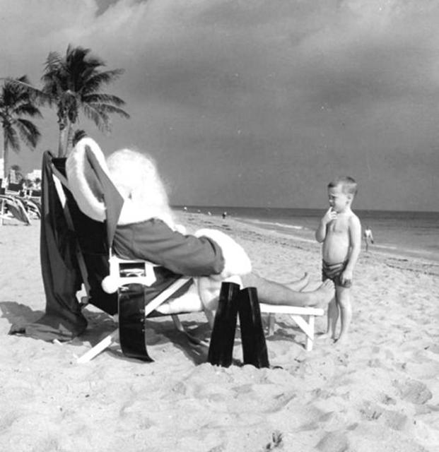 Child Looking at Santa on the beach, Florida, 1964
