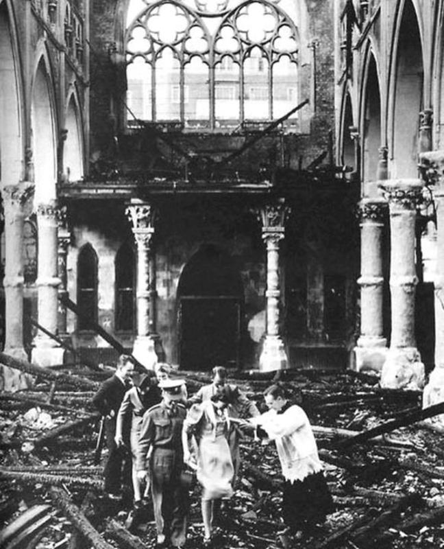 Couple carrying out their wedding ceremony in a London cathedral despite it being leveled by the bombing of WWII.
