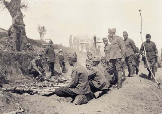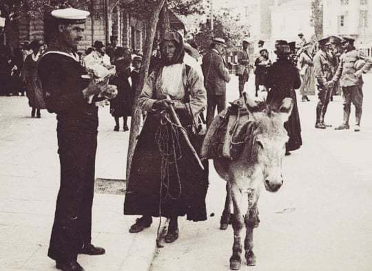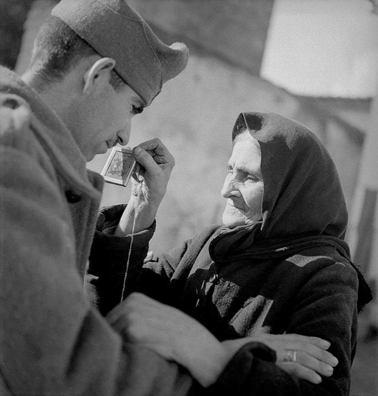 A Greek woman sees her son depart for the Albanian front before Greco-Italian War in 1940
