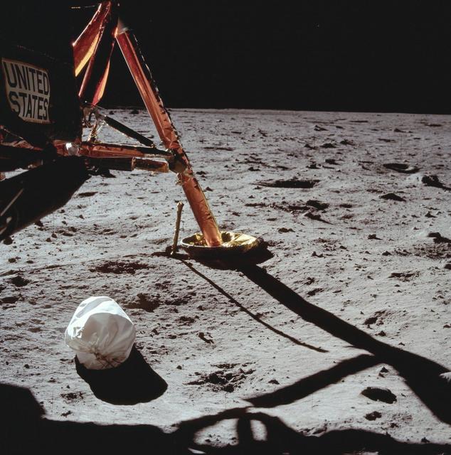 The first photo taken on the surface of the moon by a human being. Neil Armstrong to be exact, in 1969