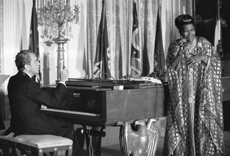 President Nixon accompanies Pearl Bailey at the White House, 1974