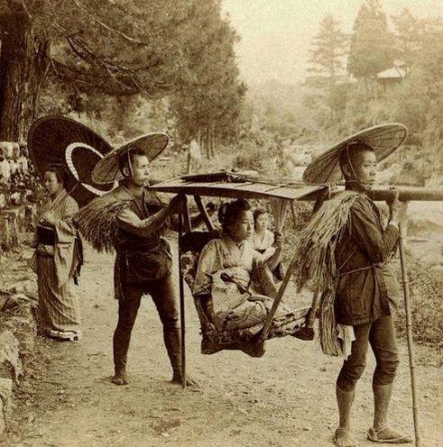 Japan. Geisha travelling by yama kago in 1901