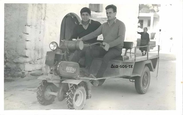 σκαπέθια και έμπαινε άλλος άξονας με δυο ρόδες, ενώ πίσω «κοτσάριζε» μια μικρή πλατφορμίτσα και έτσι το μηχάνημα μετατρεπόταν σε μεταφορικό μέσον. Φόρτωναν πάνω τα εργαλεία, διάφορα πράγματα ή