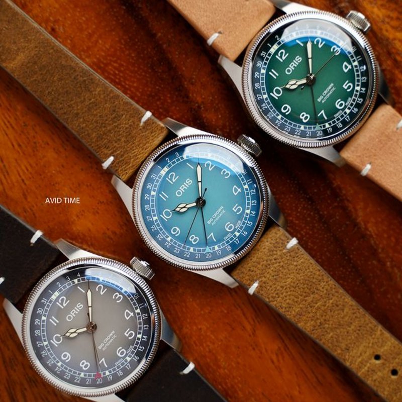 Oris Big Crown x Cervo Volante watch, gray, blue, green, 38mm Avid Time Oris