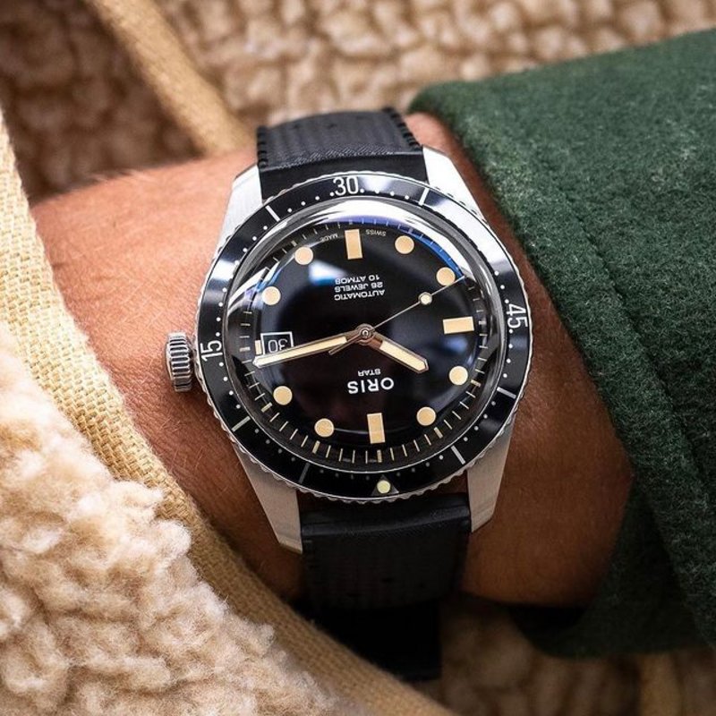 Introducing the latest Fratello × ORIS collaboration, ORIS Divers Sixty-Five Fratello Limited Edition. The dive watch draws inspiration from what Founder of Fratello Watches @rjbroer describes as “one of the most beautiful vintage models, the Oris Star dive watch from 1968”. Incorporating the glossy black dial and a trapezoidal date frame at 3 o’clock, it pays tribute to the vintage model with a more contemporary size of 40mm. The release is limited to 300 examples with each watch individually numbered. Learn more about the latest Fratello × ORIS collaboration