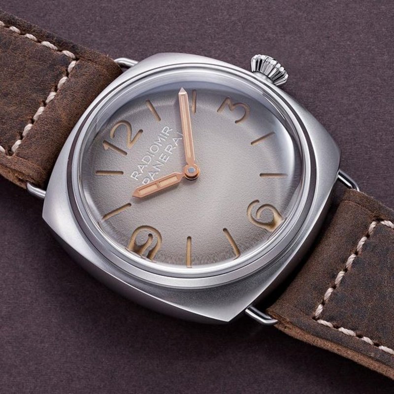 that illuminates in green in the dark are shaded with double-finishing polish that transitions from a lighter top to a darker gradient at the bottom. Available in pastel light blue, green, and powdery pink, the dial marks the date at 3 o’clock and small seconds at 9 o’clock. A subtle Panerai inscription finishes the quintessentially cosmopolitan look of the pastel dials, highlighting the all-new colors, used for the very first time in the history of Panerai.