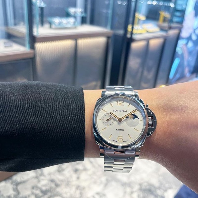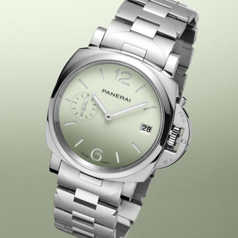 As is typical for this watch icon that was first introduced in 1935, the debutantes feature a luminous sandwich dial with two bold Arabic numerals and hour markers. Within a cushion-shaped case, all five newcomers are driven by the three-day power reserve self-winding P.900 automatic caliber. It indicates the subsidiary seconds at 9 o’clock and the date at 3 o’clock.