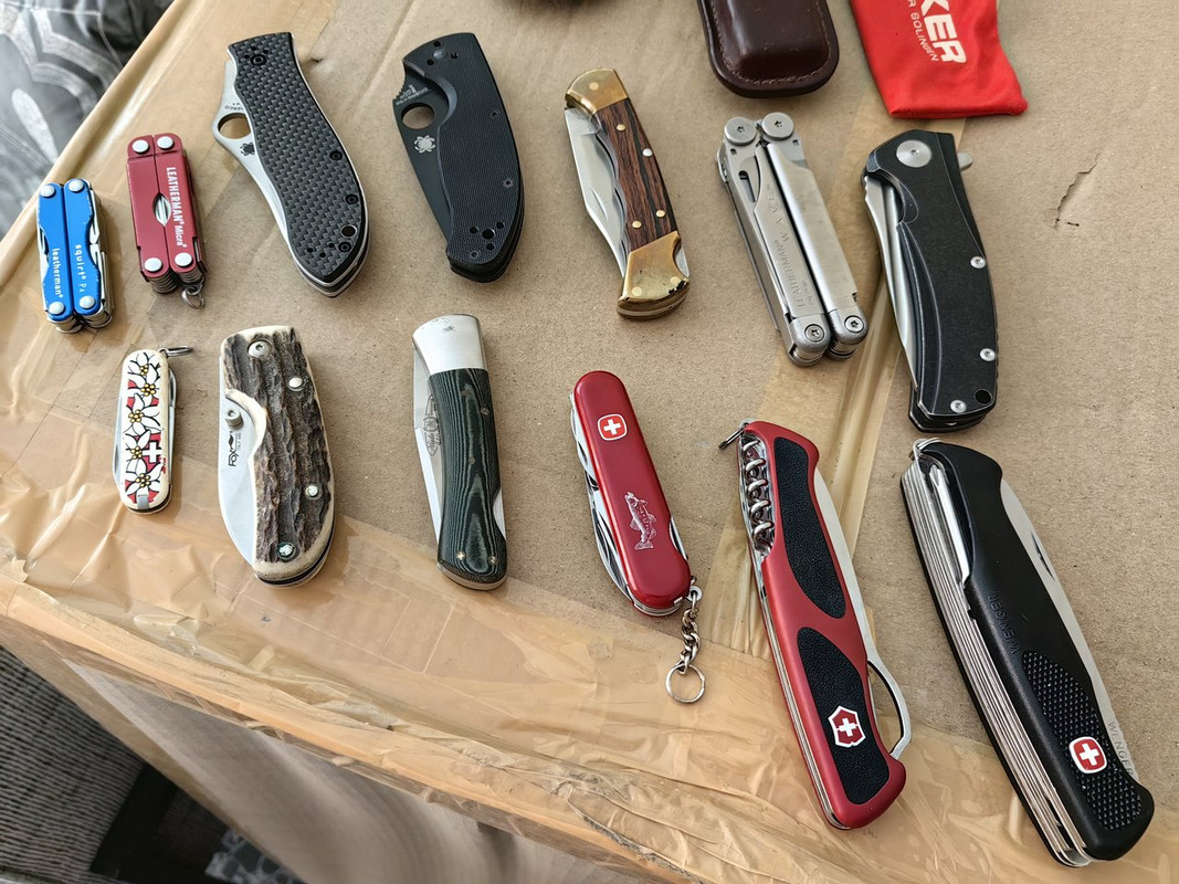 Όλα αυτά εδώ λοιπόν, τα Spyderco, το folder της Reate (απίστευτη λεπίδα), αλλά κι ένα Benchmade [που δεν μπορώ να βρω στα πράγματά μου] τα είχα πάρει από τον Jeff.