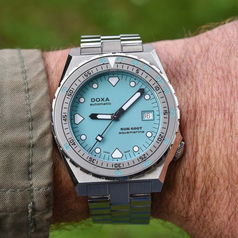 The Doxa Sub 200T costs 1,550 euros (1,550 US dollars) with a rubber strap and 1,590 euros (1,590 US dollars) with a rice bead bracelet