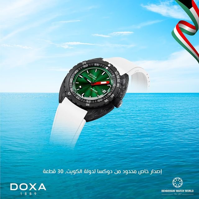 Doxa Sub 300 is an exclusive edition for the State of Kuwait. The case is made of carbon and titanium