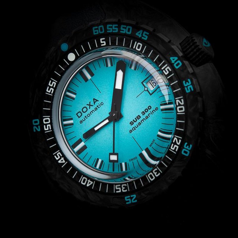The forged carbon case of the SUB 300 Carbon Aquamarine