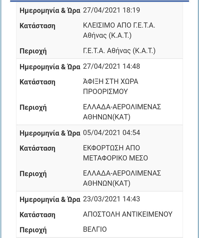 Η παραγγελία έγινε στις 16/4 & βρίσκεται στην Αθήνα από τις 29/4.