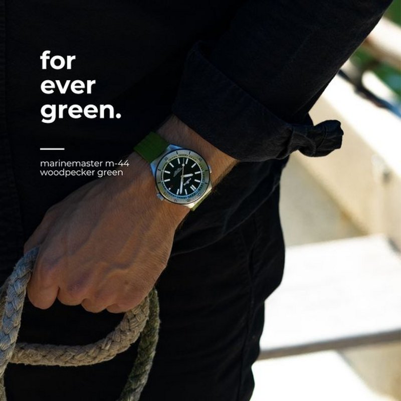 Inspired by nature. In harmony with planet earth. Just like the rest of the Marinemaster collection, the new Marinemaster M-44 Black Resin is also made of recycled steel