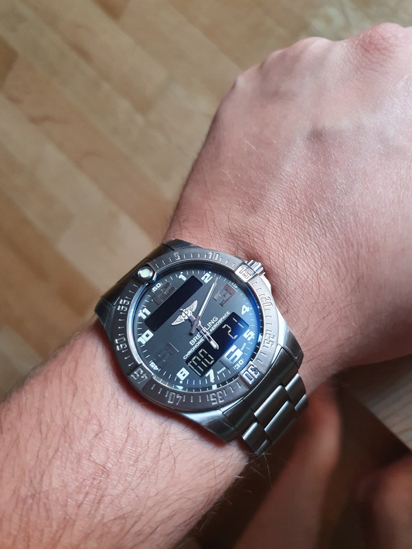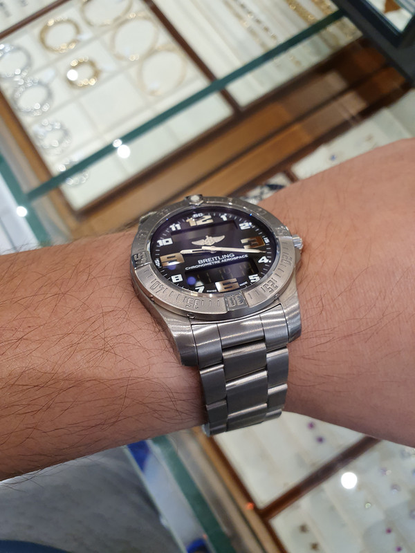 Χωρίς να αποκλείω όμως άλλη μια αγορά μηχανικού και έχοντας ως προτεραιότητα την ανεύρεση αυτού που θα μου κάνει το κλικ ξεκίνησα δοκιμάζοντας πολλά και διάφορα ρολόγια. Για αυτό και στις ρολογοτσαρκες προταγωνιστω τώρα τελευταία. Και εκεί που μπήκα λοιπόν σε ένα μαγαζί να δοκιμάσω ένα gshock λέω στον πωλητή.. πιάσε και αυτό το tissot t touch II της βιτρίνας το οποίο φαίνεται μπάνικο να το δούμε. Με το που το φόρεσα λέω εδώ ήμαστε..! Οπότε ξεκίνησα μια μικρή έρευνα αγοράς σε γνωστά καταστήματα. Σε ένα λοιπόν από αυτά τα οποία μπήκα να ρωτήσω, έπεσε στην άκρη του ματιού μου το Breitling evo aerospace. Το δοκίμασα περισσότερο από περιέργεια για να πω την αλήθεια αφού δεν ήθελα να ανέβω τόσο πολύ σε χρήματα... Και αυτό ήταν το λάθος μου αγαπητοί... το δοκίμασα...!!!! Τέλος... σκοτάδι... το μυαλό μου κόλλησε εκεί..! Ο πωλητής μου είπε ότι μαλλον είναι discontinued το συγκεκριμένο μοντέλο γιατί eta τέλος(φυτίλιασμα κανονικό δηλαδή)...! Φεύγοντας πέρασα από την B για μια δεύτερη προσφορά όπου και δεν το είχαν καθόλου για αρκετό καιρό από ότι μου είπαν. Εδώ να προσθέσω το παράπονο μου για τα μαγαζιά...