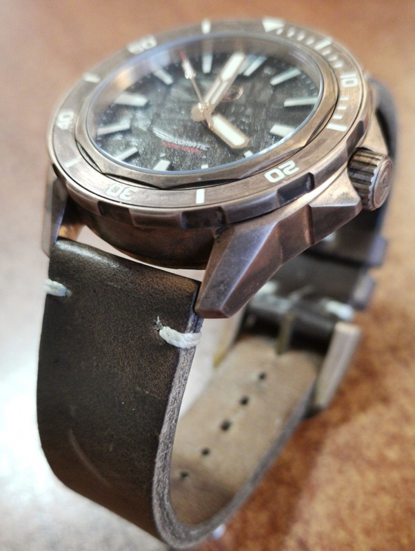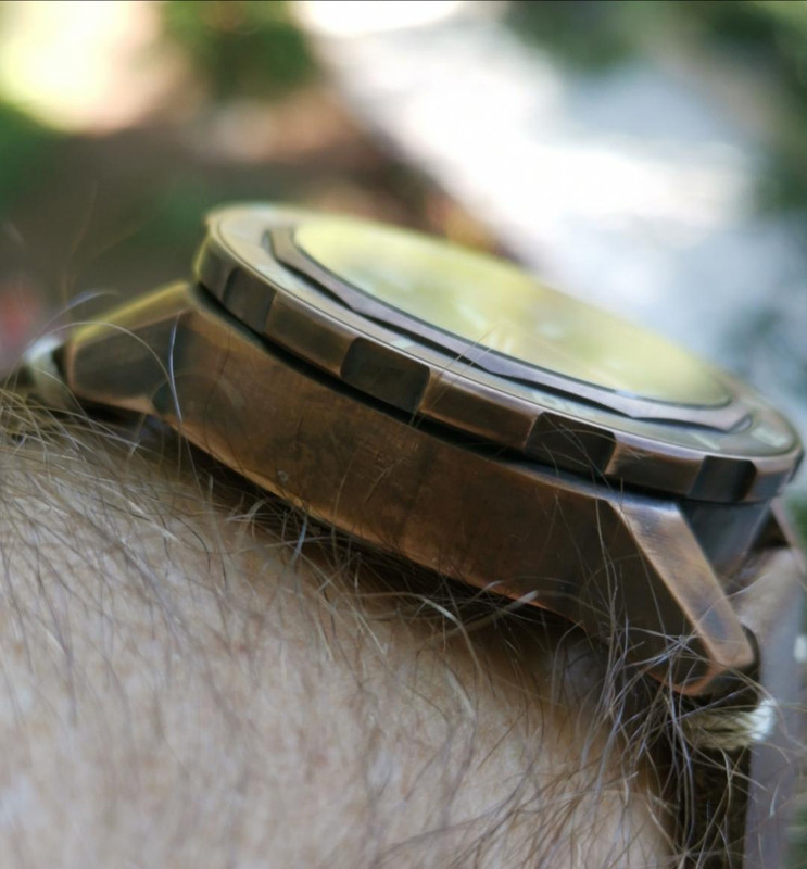 Ο συνδυασμος ρολογιου ( διαφορετικο ) , με το αποτελεσμα της πατινας , δημιουργησαν ενα ρολοι με αποψη , χαρακτηρα , μοναδικοτητα , προσωπικοτητα.