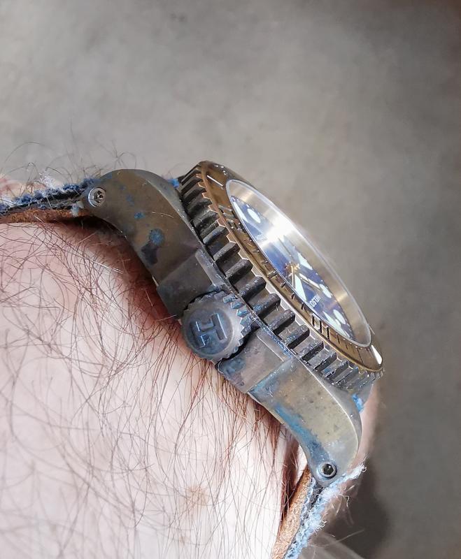 Το ζήτημα αλλάζει αν έχουμε πριν βουτήξει το ρολόι σε αλατόνερο, όπου πράγματι οξειδώνεται πολύ περισσότερο, όμως αν δεν υπάρχουν «λεκέδες» νερού η οξείδωση είναι και πάλι ομοιόμορφη.