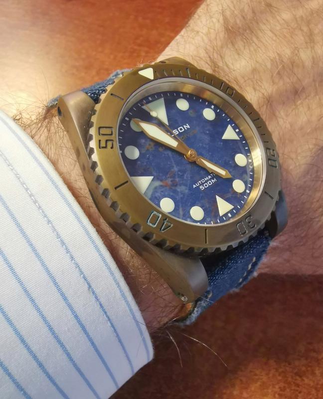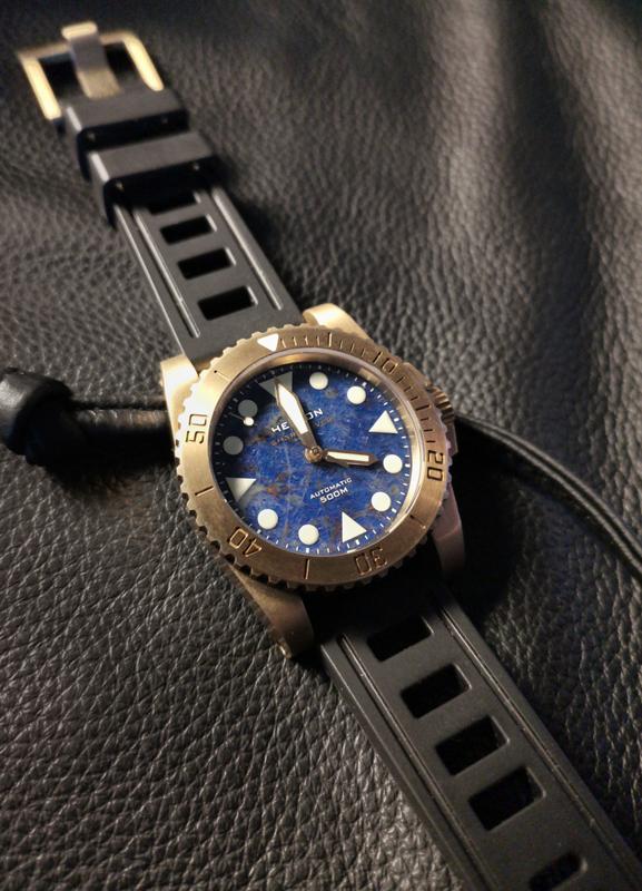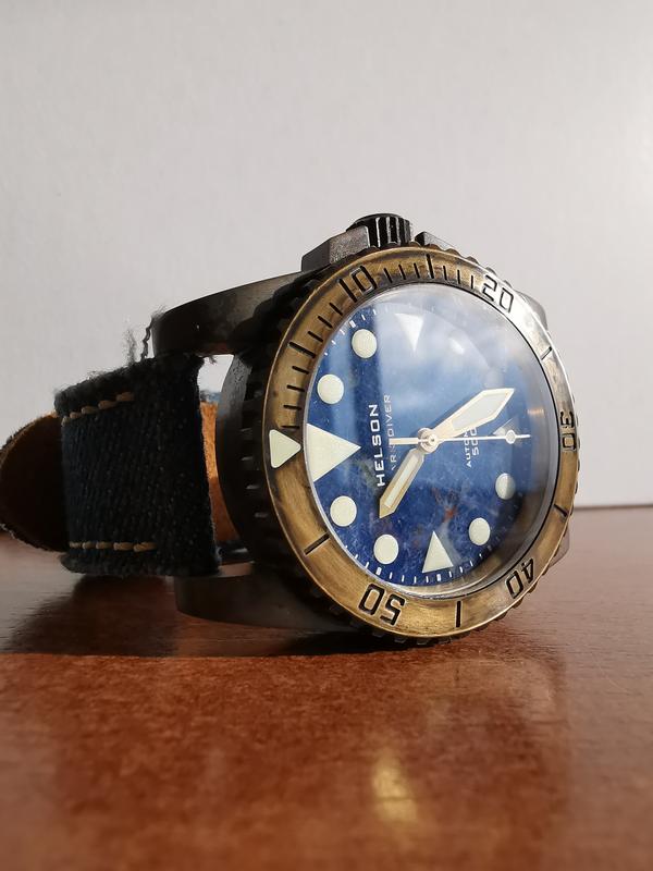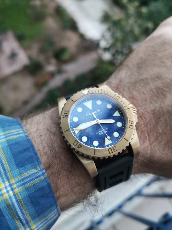 O ιερομάρτυρας αυτή τη φορά είναι ένα Helson Shark Diver Brass 42mm από πρόσφατο ταξίδι μου εν Χονγκ Κογκ (τα συγκεκριμένα τα ζαχάρωνα καιρό, αλλά ήταν sold out και σκεφτόμουν έντονα και τα τελωνεία. Στάθηκα τυχερός και δεν το μετάνιωσα μια και είναι ακριβώς όπως και στις φωτογραφίες, απλό με δωρικές πολύ όμορφες γραμμές, χωρίς φινέτσα αλλά ρολόι εργαλείο).