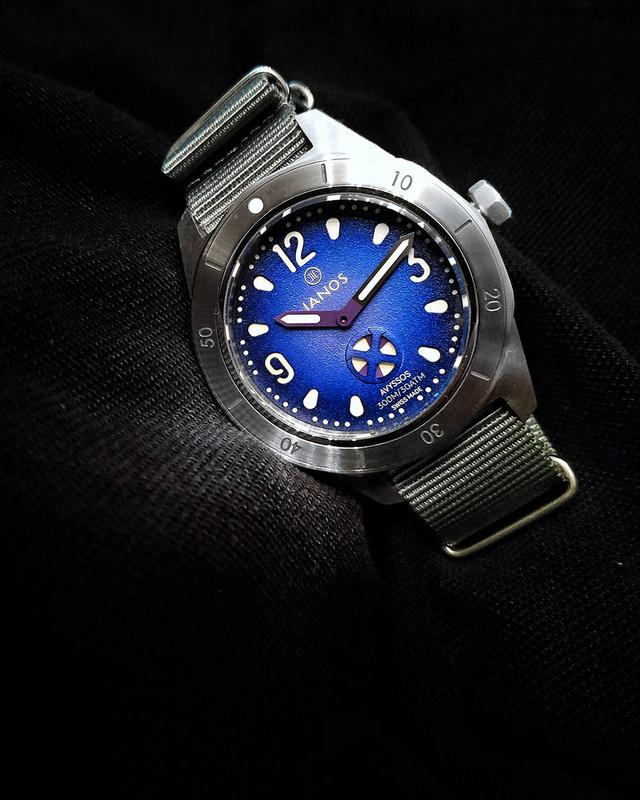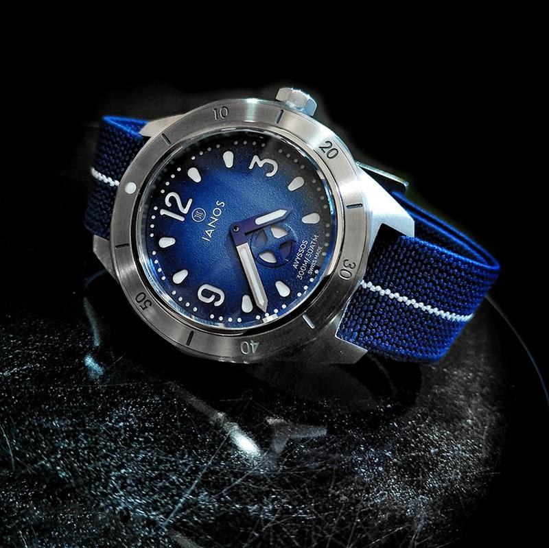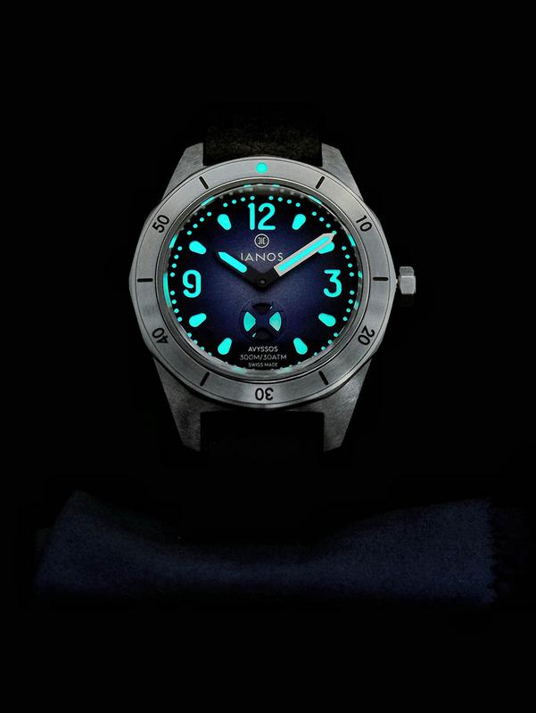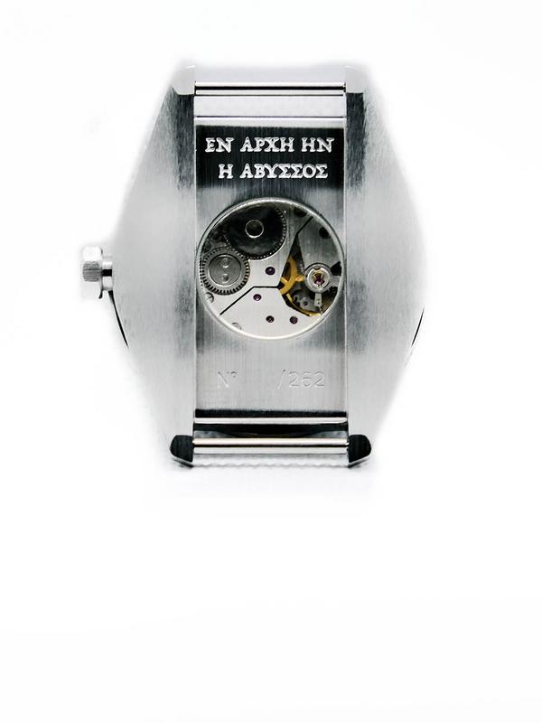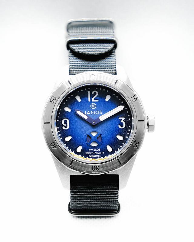 Καταδυτικό ρολόι, AVYSSOS. Ακόμα και στην ονοματοδοσία η απλότητα μπορεί να ξεχωρίζει και να κάνει τη διαφορά. Η ελληνική λέξη άβυσσος (στερητικό «α» και βυσσός [βυθός]) σημαίνει ντιπ καταντίπ βαθύ, σα κάτ’ που λένε! Ελληνική λέξη με διεθνή αναγνωρισιμότητα  και χρήση. Και κάπως έτσι ξεκινάει το ελληνικό του πράγματος. Και συνεχίζεται με τη δημιουργία του μύθου στις σχεδιαστικές αναφορές. Πέραν του ονόματος δύο είναι τα στοιχεία στο dial που τραβούν την προσοχή. Το σχήμα των markers που παραπέμπει στη γνωστή καμπανελόπετρα που χρησιμοποιούσαν οι σφουγγαράδες ως βαρίδιο για να τους κατεβάζει στο βυθό, και ο δίχρωμος περιστρεφόμενος δίσκος αντί δευτερολέπτων στο σχήμα του μηχανισμού των Αντικυθήρων.
