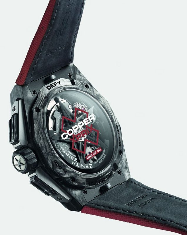 ZENITH DEFY Extreme E Copper X Prix Limited Editio Case: carbon and titanium Diameter: 45mm Water-resistant: 200m Movement: El Primero 9004 Power reserve: 50 hours Price: CHF 26,900