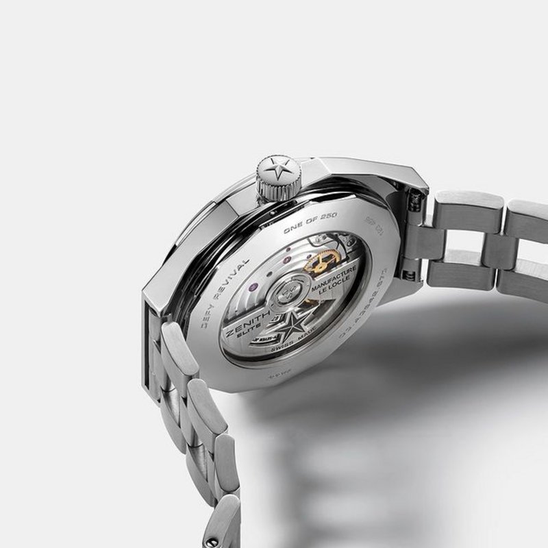 From the warm smoked dial to the horizontally grooved hour markers, it isn't just the case that makes the DEFY A3642 such an seminal piece of ZENITH history. These details are perfectly reproduced in the DEFY Revival A3642