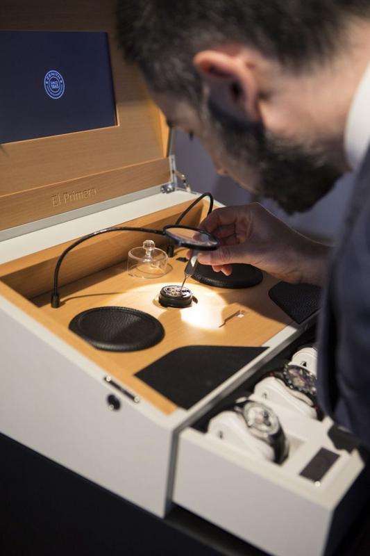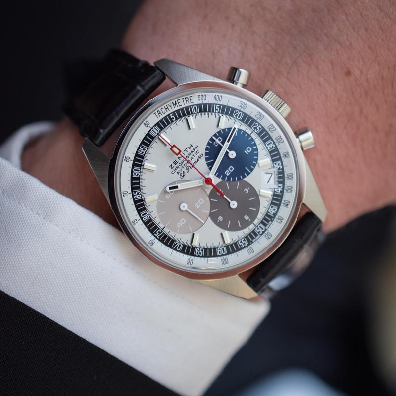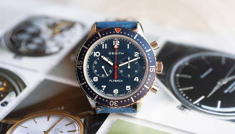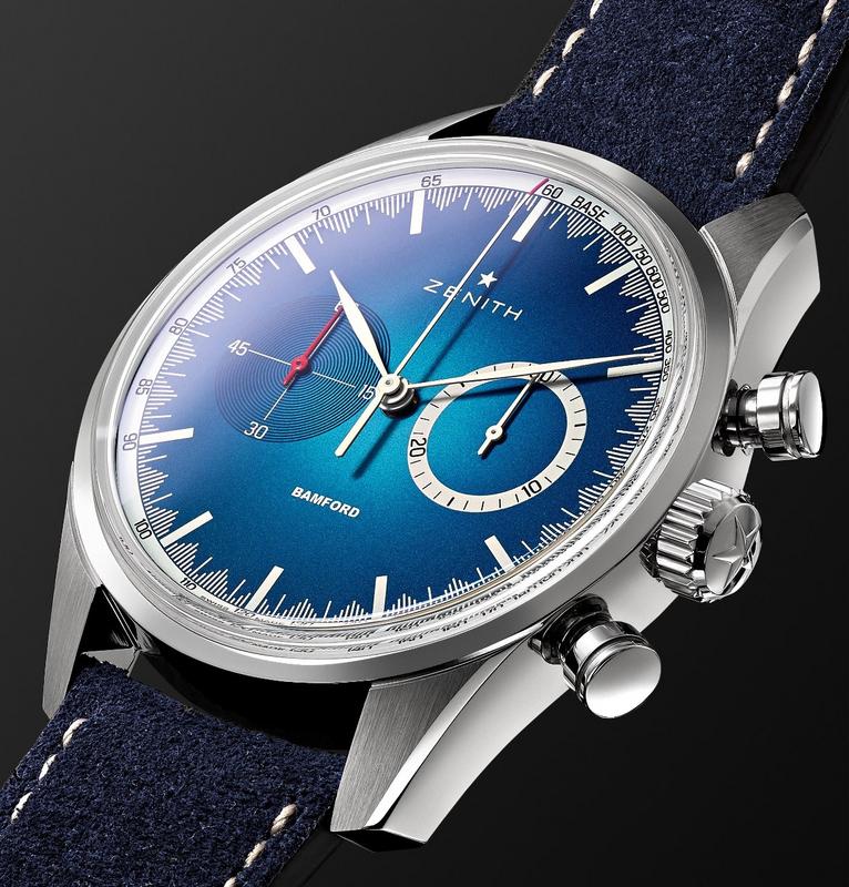 Based on the Zenith Heritage 146 model, the watch takes cues from several of the brand’s historical design elements. These subtle touches include the tachymeter inspired by a 1971 El Primero, a red second hand, aesthetic reminders of a vintage chronograph case and a centric sub-dial rings hark back to the old Zenith recorder tell-tales and motion detecting clock.