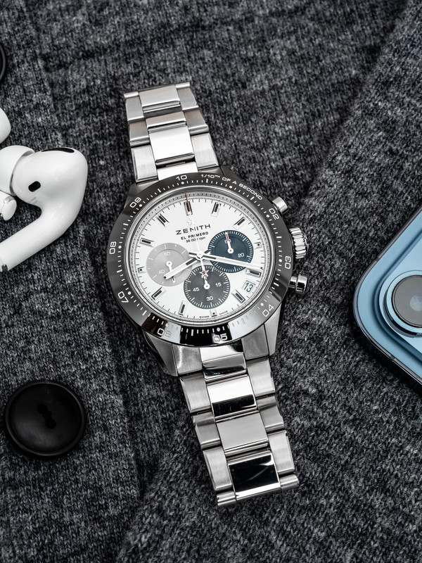 Μου αρέσει πάρα πολύ και η signature τριλογία χρωμάτων στα subdials της Zenith. Πραγματικά ξεχωριστά.
