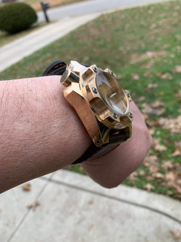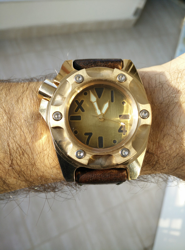 Αυτά λοιπόν από το μπρούτζινο τερατάκι μου. Το ξέρω ότι είναι σχεδιαστικά ιδιαίτερο, ότι οι μόδες με τις 47άρες κάσες έχουν περάσει, όμως εγώ είμαι ενθουσιασμένος με το νέο μου απόκτημα ( και με την ιδέα ότι κάποιος άνθρωπος με αγάπη για τα ρολόγια έβαλε κόπο, μεράκι και προσωπική δουλειά για να το φτιάξει σύμφωνα με τα γούστα μου) και σκοπεύω να το κρατήσω για καιρό στον καρπό μου (που σίγουρα θα μεγαλώσει :D )!!