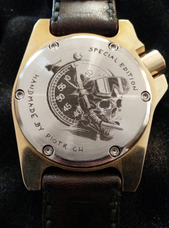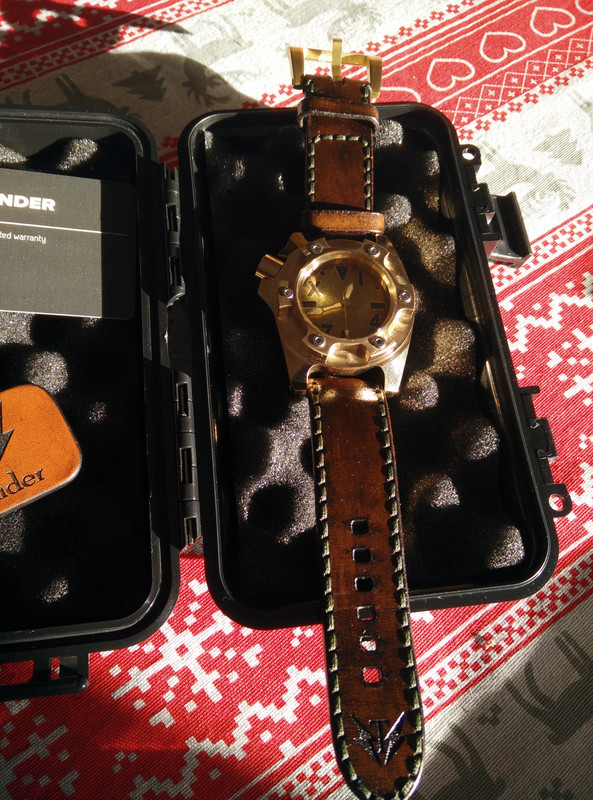 Έχοντας καταλήξει λοιπόν στους δύο τελικούς υποψήφιους, τα Nethuns n.5 και H2O kalmar 2 bronze, μια μέρα σε κάποιο από εκείνα τα grοup του Facebook στα οποία καταφεύγουν οι εθισμένοι στην πατίνα, γνώρισα τον κύριο Piotr Charzaszcz, κατασκευαστή των ρολογιών Thunder. Μπρούτζινη χειροποίητη κάσα και dial, μεγέθη 47mm και άνω, brutal σχέδια, εγγύηση εφόρου ζωής (ο Θεός να τον έχει γερό τον άνθρωπο  :) ) και τιμή τριψήφια ? Εδώ είμαστε….