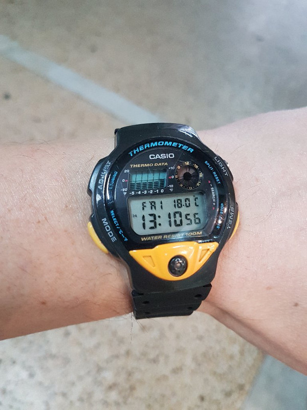 Το ρολόι-θερμόμετρο κυκλοφόρησε το 1990 κ έχει αισθητήρα για την θερμοκρασία.Έχει επίσης γράφημα που απεικονίζει τις εναλλάγες της θερμοκρασίας κατα την διάρκεια της ημέρας.Δείχνει την ώρα ανατολής κ δύσης του ήλιου.Επιπλέον λειτουργίες είναι το ξυπνητήρι κ το χρονόμετρο.