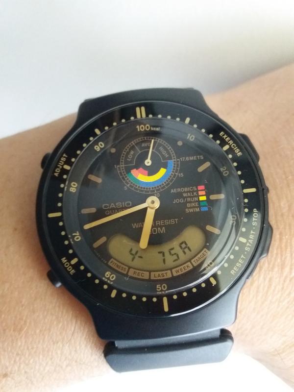 Ένα ρολόι της δεκαετίας του 90 που αφορούσε ανθρώπους της γυμναστικής.Σου δείχνει τις θερμίδες που καίς αναλόγως την άσκηση που κάνεις.Μπορείς να καταχωρίσεις κάποια στοιχεία σου όπως ηλικία,βάρος,ύψος ώστε να είναι πιό ακριβείς οι μετρήσεις.Επιπλέον λειτουργίες χρονόμετρο,δεύτερη ώρα,ξυπνητήρι.