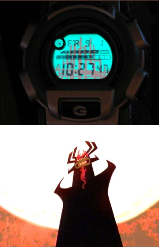 Σπάνια έκδοση ενός DW-003 που βγήκε για την Αμερικανική αγορά. Μου το έφερε ένας φίλος μου από  Αμερική το 2002.Του είχα πεί όταν γυρίσει με το καλό να μου φέρει κάτι special. Κ πράγματι μου έφερε αυτό το κομμάτι το οποίο είχε σχεδιαστεί από έναν Αμερικανό τον Gio Estevez. Αυτός ο τύπος είναι καλλιτέχνης-σχεδιαστής ο οποίος φτιάχνει σχέδια για skateboards. Η Casio του ανέθεσε την σχεδίαση ενός νέου μοντέλου G-shock. Βασίστηκε πάνω στο μοντέλο 003 κ ξεχωρίζει για το πράσινο χρώμα κ το υφασμάτινο λουρί του με βελκρο.Δεν βγήκε σε αλλά χρώματα αυτή η έκδοση αλλά το 003 γενικά ναί. Όταν ανάβει το φως του βλέπεις ένα σχέδιο στο οποίο φαίνεται ένας χαρακτήρας από ένα γιαπωνέζικο κόμικ. Είναι ο πολέμαρχος "Aku" που στα γιαπωνέζικα σημαίνει κακός. Το ρολόι έχει τις βασικές λειτουργίες όπως το ξυπνητήρι, χρονόμετρο,αντιστροφή μέτρηση.